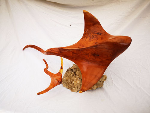 C'est ainsi que je me suis formé auprès de plusieurs professionnels de haut niveau. Les formes et les couleurs du bois orientent pour une grande part la création de mes œuvres. Un de mes objectifs désormais est de marier sur un même objet les techniques de tournage et celles de sculpture.